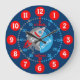 Färga pojkar Grafikväggklocka färg kodade för att hjälpa ditt barn att läsa en klocka med en rymdraket och ditt namn. Denna färgstarka undervisningshjälp omfattar minuter och timmar och förbi och till färg-kodning skapar barnets lektion att tala om tid. Designad enbart av Sarah Trett. Ett underbart tillägg till en pojkes sovrum för barn som lär sig att läsa en klocka ansikte. färg kodade i rött, blått, grått och vitt.