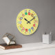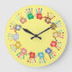 Barn med färgad händer väggklocka. gultens bakgrund kan ändras. klicka bara på anpassa