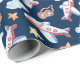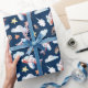 Roligt presentpapper med flygplans tema för barn, med flygplan, stjärnor och moln på en marinblå bakgrund. Perfekt för födelsedagar, baby shower, tackgåvor och mycket mer.