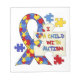 Ett pusselbiet, som läser 'mig, älskar ett barn med Autism", pusseldelar av blått, rött, och gult och autismmedvetenhetbandet på autismmedvetenhetT-tröja, hoodies, muggar, magneter, kort, klistermärkear, hänger lös, keychains, knäppas, och andra objekt.