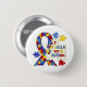 Ett pusselbiet, som läser 'mig, älskar ett barn med Autism", pusseldelar av blått, rött, och gult och autismmedvetenhetbandet på autismmedvetenhetT-tröja, hoodies, muggar, magneter, kort, klistermärkear, hänger lös, keychains, knäppas, och andra objekt.