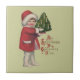 Barn med julgran Vintage Illustration Konst Kakelplatta