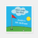 Barn mini golf putt med golfingerblöjor Födelsedagsfest Napkins. Färgfull illustration av roligten för barn. Lämpligt för pojkar och flickor. Idrottstemat firande med aktiviteter för små barn. Sparkad grönt i miniatyrgolfbanan med flagga, boll, moln och sol. Cute typography-mall.