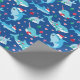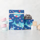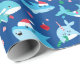 Barn Narwhal-haj under Pappra Julafton. Narvala, haj, val under havet: rött, grönt och blått mönster med pepparfärger, polkagrisar och prydnadsämnen.