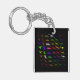 Färgglad akrylnyckelring med regnbågsdinosaurier. Förhistorisk psykedelisk konst med t rex, triceratops, pterodactyl, gallimimus och diplodocus.