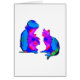 Regnbåge- eller Kaleidoscopesilhouette av en flicka och henne katt eller kattunge.