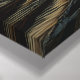 A magnificent barn owl with its signature heart-shaped face and piercing dark eye gazes intently amid scattered autumn leaves. Warm golden-brown plumage blends with creamy white and slate-gray accents, every feather rendered in exquisite detail against a rich, textured dark background. This realistic digital wildlife art captures quiet wisdom and seasonal elegance, making it ideal for canvas prints, posters, throw pillows, mugs, phone cases, and home décor that celebrates the beauty of owls and nature.