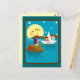 Barn på en pappersbåt vinkar till en havsjungfru. vykort