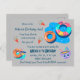 Barn pool party födelsedag Postkort. Cool pojke pool party födelsedagsinbjudan. Designen har vattenfärg illustrationer av sommar och pool och texten ', gratis mat, dryck och simning - Är du med?'. Den roliga moderna mallen är lätt att anpassa med dina egna festdetaljer.