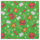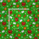 Festive emerald grönt väv med mönster av söta, röda julstövlar, hattar och manteldjur med polkagrisar och snöflingor