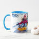Juldagen kaffe koppar med en söt illustration av vinterdagen med barn som lyckligt sjunger ner ett backe tillsammans!