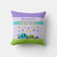 Dubbla-sidig barn-ladybugs dekorativ kudde. Lägg till en namn. Grönt, lila, turkos och gult färg.