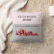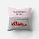 Barn Rumslingor dekorativ kudde. Lägg till en namn. Röda och svarta landfåglar. Grått och rosa färg.