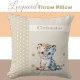 Dubbla-sidig dekorativ kudde/kudde för ett barns sovrum/daghem/lekrum. Den här bruna och vita kudden har polka dots, stjärnor och en söt leopard, som du kan anpassa med namn.