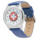 Barn Schweiz Flagga Blue Leather Strap Watch Armbandsur