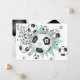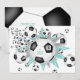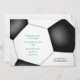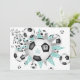 Den här sportiske flickans fotbollsfestinbjudan med ett lätt teal och grått färg-tema har en "explosion" av olika storleka fotbollar och lätta teal- och grått-stjärnformer på framsidan och en abstrakt överdimensionerad fotboll på baksidan - anpassa med sin fotboll party på fram- och baksidan - av katz_d_zynes
