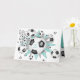 Den här sportiske flickans födelsedagskort har ett lätt teal och grått färg-tema och har en "explosion" av olika storleka fotbollar och lätta teal- och grått-stjärnformer på framsidan och en abstrakt förstorad fotboll på insidan - personliggör med namn och ålder och ditt personliga födelsedagsmeddelande - av katz_d_zynes