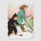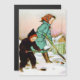 Magnetbarn som skjuter upp julhälsningskort i snö