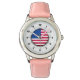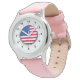 Barn Stainless Steel Rosa Leather Strap Watch USA flagga