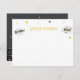 Personligt superhjälte notkort med en stadssiluett, blixtar och stjärnor med en tecknad känsla.