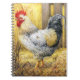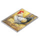 Vackert svart och vitt tupp som går igenom hö, perfekt för land-deka. Oljepasta och färgpenna konst av Paxdomino.