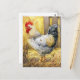 Vackert svart och vitt tupp som går igenom hö, perfekt för land-deka. Oljepasta och färgpenna konst av Paxdomino.