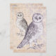 Elegantens kollage för vintage består av två antika gravingar av uggla och gammal text och övertäckningar av tapet från damm. Perfekt för naturen älskare, fågel älskare, födelsedagar och andra evenemang.