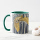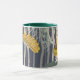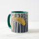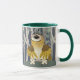 Cute lille Barn Ugglor på en Mugg! Underbart fågelskog i träd i bakgrunden till denna vackra uggla-design.