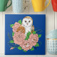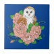 Barn Uggla Rosa Flowers Blue Kakelplatta