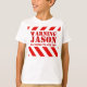 Varningstecken t-shirt. Roligtens barn t-shirt skräddarsy med ditt eget namn och ord om det behövs. Varning Jason kommer för att hämta dig. Designad av Sarah Trett.