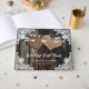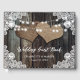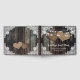 Romantisk landsbyggsbröllop gäst bok med två brännhjärtan, vit blommigt snöre och sträng ljus mot en lada med träbakgrund. Perfekt gäst bok för din bröllopsfest i land, gården, trädgården eller ladan. Matchande objekt är tillgängliga.