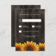 Barn Wood + Rustic Solros Bröllop OSA Cards - har en bakgrund av barrträ med roliga solblommor vid grund.