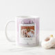 Mamma kommer att visa sina barnbarn med det här söta fotokaffet mugg.kopp i rosa och grått lyder: Barnbarn gör livet stort och kan vara personlig med ditt familjefoto och kärlek.