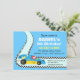 Organisera en födelsedagsfest i tävling för en födelsedagspojke som kärlekar tävla bilar och leksaker! Den här färgstarka och ljusa barns födelsedag-partiinbjudan inkluderar tävla inslag, som den svarta och vita incheckade spårlinjen flaggor och tävling, en blå och gult liten sportbil med lite racerutrustning inuti en röd hjälm. Till och med skrivan för inbjudan matchar temat tävling där platsen heter tunga i kinden som ett tävling-spår och frasen"tävling över till". Anpassa med dina party-uppgifter, inklusive numret på bilen! Bakgrunden till färg kan ändras för att göra det till din egen inbjudan!