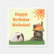 En söt vit och brun pärlgul gris i gräset framför sitt svamphus på en baksida av pastellbakgrunden under sol graces denna födelsedagsfest papper napkin. Anpassa texten fält för ditt meddelande, ta bort text eller klicka på anpassa för att markera ett teckensnitt stil, färg och storlek som du vill använda. Om du tycker om det men inte behöver det nu, följ TheAspenstand för att lätt hitta den söta napkin senare.