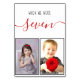 Ett modernt och mer originellt sätt att personliggöra dina bordskort med barndomsbilder av brud och brudgum i den åldern som står på numret (standard är sju). Platshållarbilderna av en liten flicka (bruden) och en liten pojke (brudgummen) är i svarta ramar i den nedre halvan. I den övre delen finns meddelandet "when we were seven" med åldern skriven i ett rött handskriftsstil och resten ovanför, i mindre svarta versaler (handskrivna bokstäver).