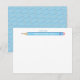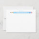 Barnens 'Ett meddelande från' platt kort med en handritad penna. Det är inuti pennan som vykortet kan anpassas. Färgerna är nyanser av blå med en stänk av rosa för pennans radergummi. Detta vykort är idealiskt som ett tackkort eller ett kom-till-min-fest-kort eller för att skriva en enkel hej. Dessa söta personliga vykort kommer att hjälpa ditt lilla barn med deras handstil.