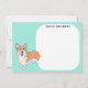 Barn kan skicka sitt eget tackmeddelande med dessa Corgi-hund tack-kort. Använd det ifyllbara fältet för att enkelt anpassa texten högst upp på korten. Det finns utrymme för barn att skriva sitt eget meddelande, göra en teckning eller diktera sitt tackmeddelande till mamma eller pappa. Dessa kort har en söt illustration av en Pembroke Welsh Corgi-hund mot en mintgrön bakgrund. Baksidan av dessa platta kort har ett matchande Corgi-mönster.