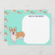 Barn kan skicka sitt eget tackmeddelande med dessa kort med corgi hund. Använd fältet "fylla i det tomma" för att enkelt anpassa texten högst upp på korten. Det finns utrymme för barn att skriva sitt eget meddelande, göra en teckning eller diktera sitt tackmeddelande till mamma eller pappa. Dessa kort har en söt illustration av en Pembroke Welsh Corgi hund mot en mintgrön bakgrund. Baksidan av dessa plana kort har ett matchande Corgi-mönster.
