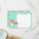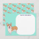 Barn kan skicka sitt eget tackmeddelande med dessa korgi hund tack-kort. Använd fältet med texten som ska fyllas i för att enkelt anpassa texten högst upp på korten. Det finns utrymme för barn att skriva sitt eget meddelande, göra en teckning eller diktera sitt tackmeddelande till mamma eller pappa. Dessa kort har en söt illustration av en Pembroke Welsh Corgi hund mot en mintgrön bakgrund. Baksidan av dessa platta kort har ett matchande Corgi-mönster.
