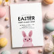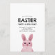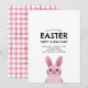 Barnens påskfirande inbjudan med rosa kanin med glasögon. DU KAN TA BORT GLASÖGONEN! Baksida med rutigt mönster.