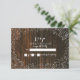 En inbjudan från Rustic och elegant bröllop r.s.v.p. med en illustration av baby utandning över en lada-trä inspirerade till bakgrunden.