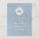 Dusty blue spara postkorten med det fantastiska baby utandningsmonogrammet blommigt
