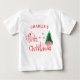 Personlig jultröja för bebisar. Designen har ett julgran med röda kulor och vackert inslagna julpresenter. "Första julen" är skrivet med festlig typografi med röda godisstavar, snöflingor och stjärnor. Mallen är förberedd för att du ska kunna lägga till barnets namn som också är skrivet med röd typografi. En fin tröja för en babys första jul i traditionell röd, grön och vit. Vänligen titta i vår butik för alternativa designs.
