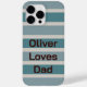 Det finns linjer med visning text som du kan byta till namn i pappa-barnet för att skapa ett anpassningsbar-meddelande. (Oliver Kärlek Pappa) Texten är brun. Rand är blå nyanser.