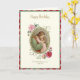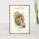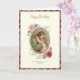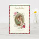 Med en vacker barnfödelsedagskort. med en vacker religiös vintagebild av Jesus med ett ungt barn och en ros dekorativ ram.
