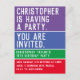 Ljusa färger och djärv design i Rand. Barnets tionde födelsedagsfest inbjudan-kort. 10 år gammal.
