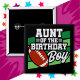 Den här fotbollsdesignen är perfekt för moster på födelsedagspojken vid födelsedagsfesten för fotbollens tema. Underbar födelsedagsfest för barn att kärlek ska spela fotboll, titta på fotboll eller framtida fotbollsstjärnspelare! "Moster av födelsedagstjukan" med en fotboll på en fält-fotbollsbild för en pojkes födelsedagsfest.
