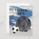 En söt grå marsvin med en svart och vit fotboll på framsidan och baksidan erbjuder malltext. Anpassa textfälten för framsida och baksida med hjälp av mallfälten, ta bort text eller redigera med hjälp av designverktyget för att välja en typsnittsstil, färg och storlek som du gillar. Behövs inte nu, GILLA så hittar du det lätt här när du behöver det senare.