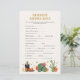 Västerländsk Baby Shower-lek. Förvandla din baby shower till en lekfull firande med Nursery Rhyme-leken, som sömlöst förenar roligt och stilfullt. Baksidan av varje kort har ett matchande mönster som ekar den västerländska Boho Chic Baby Shower-kollektionen, vilket säkerställer att din händelse är lika sammanhängande som den är underhållande. Varje element är utformat för att komplettera temat och bringa andan av öknen rätt in i din sammankomst. Låt leken bli mer än bara en aktivitet – gör den till en minnesvärd del av dina gästers upplevelse, insvept i den unika charmen hos din noggrant kuraterade firande. Inbjud dina gäster att stiga in i den berättelse du har skapat, där varje detalj talar om genomtänkt plan